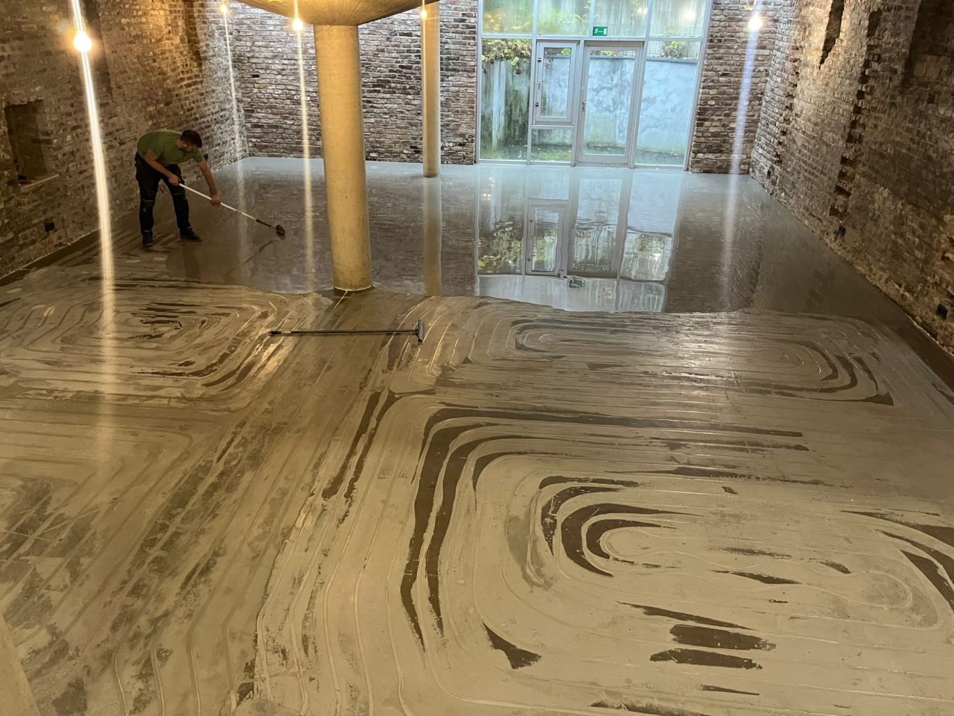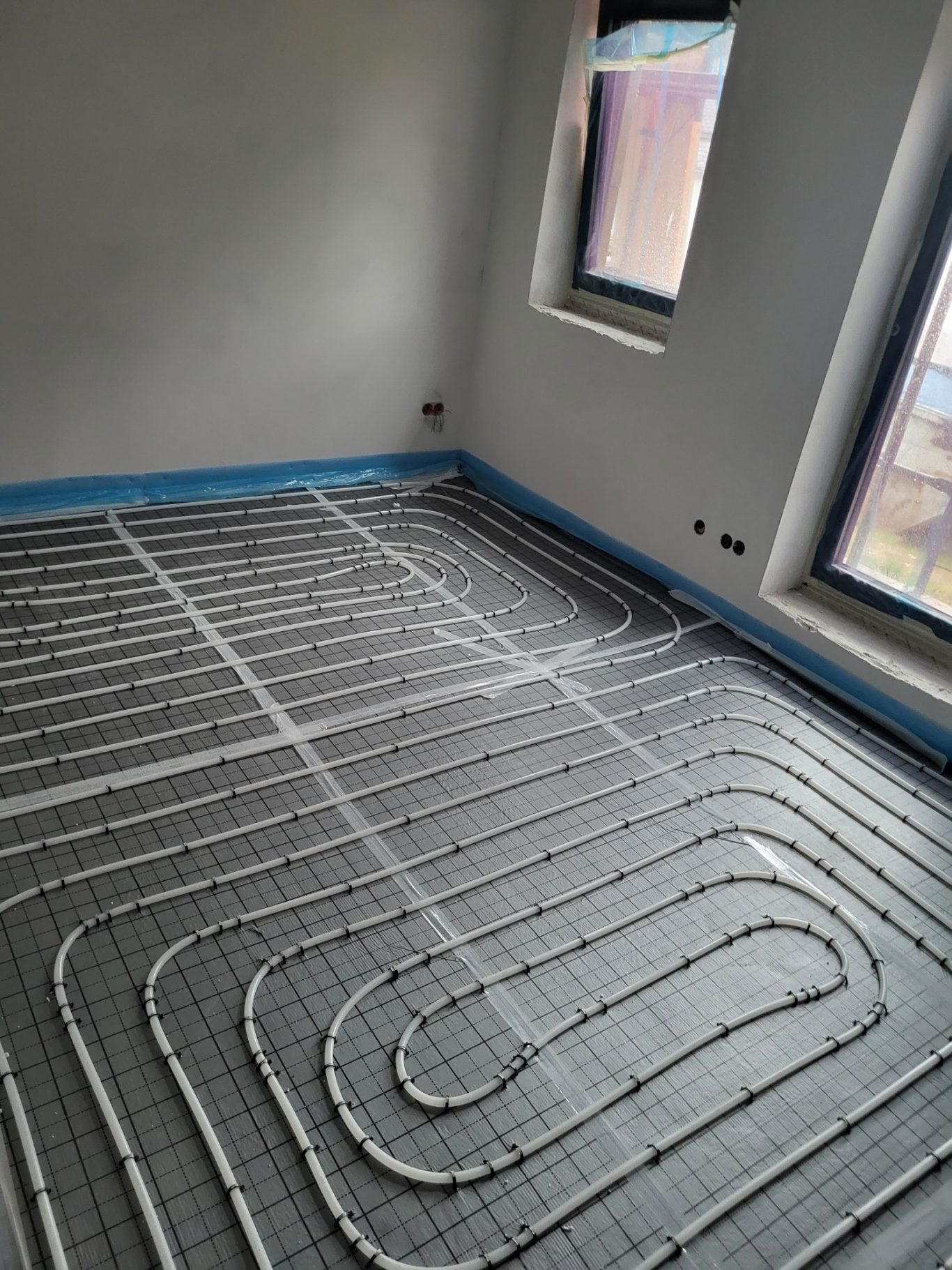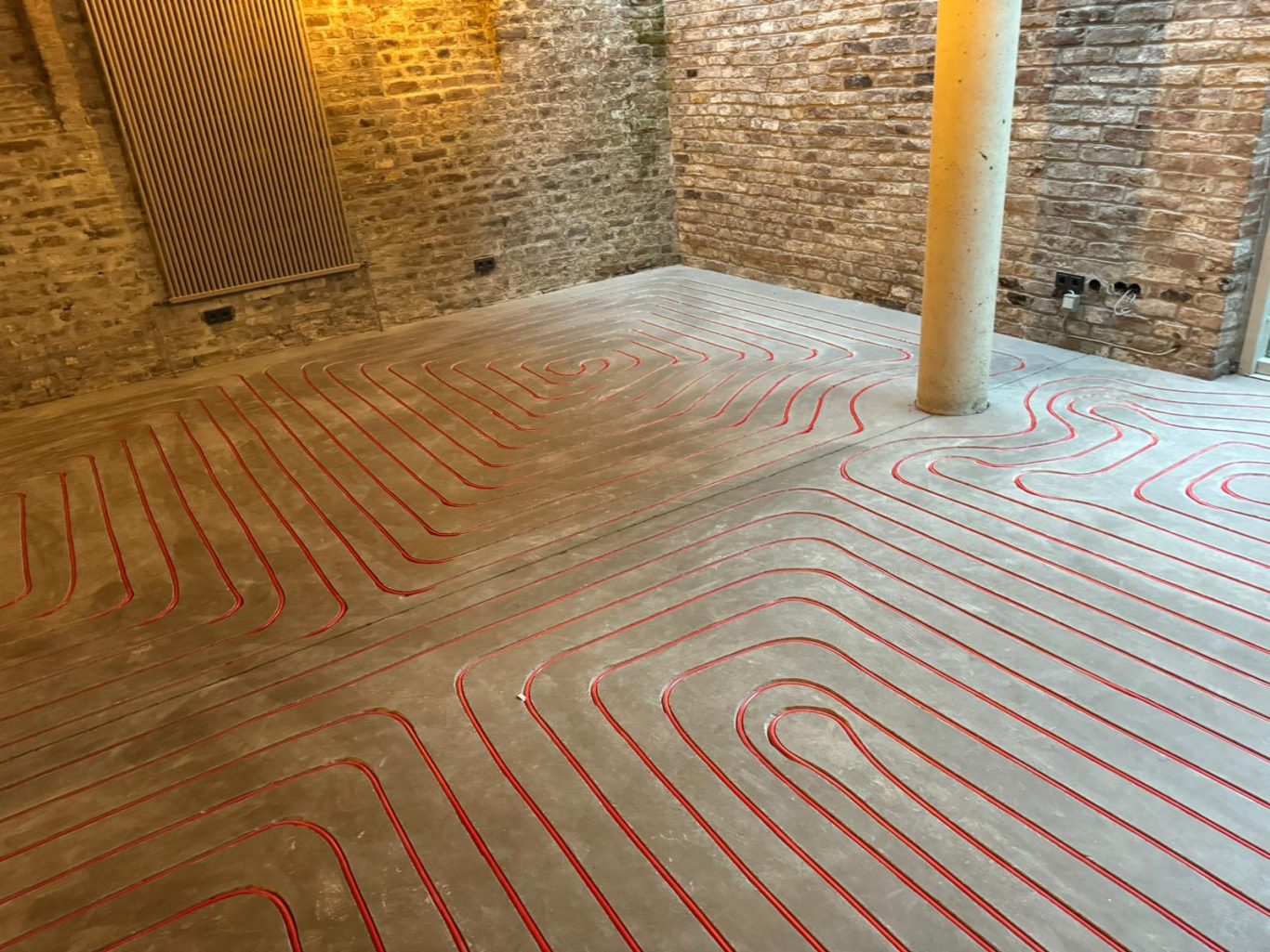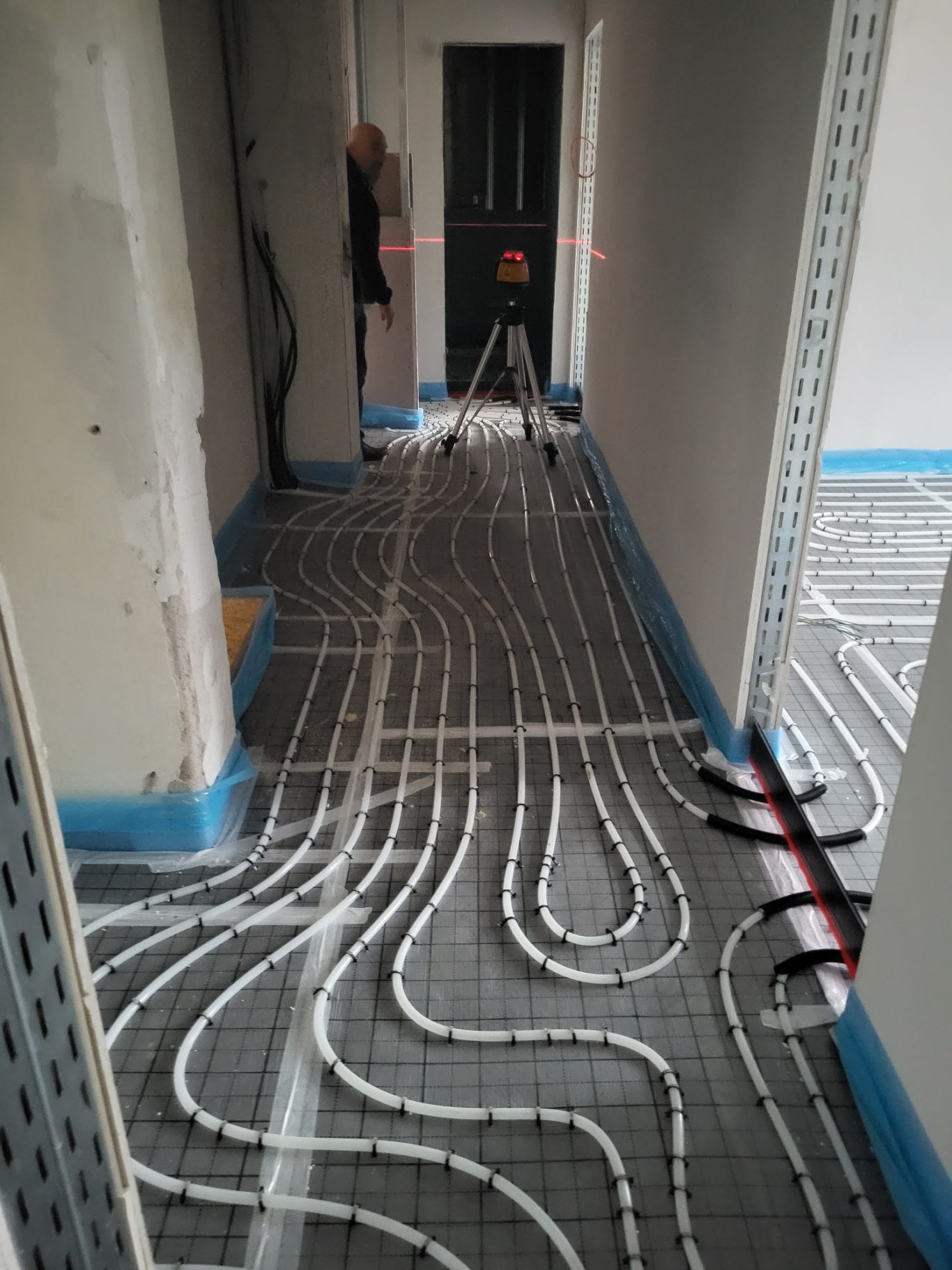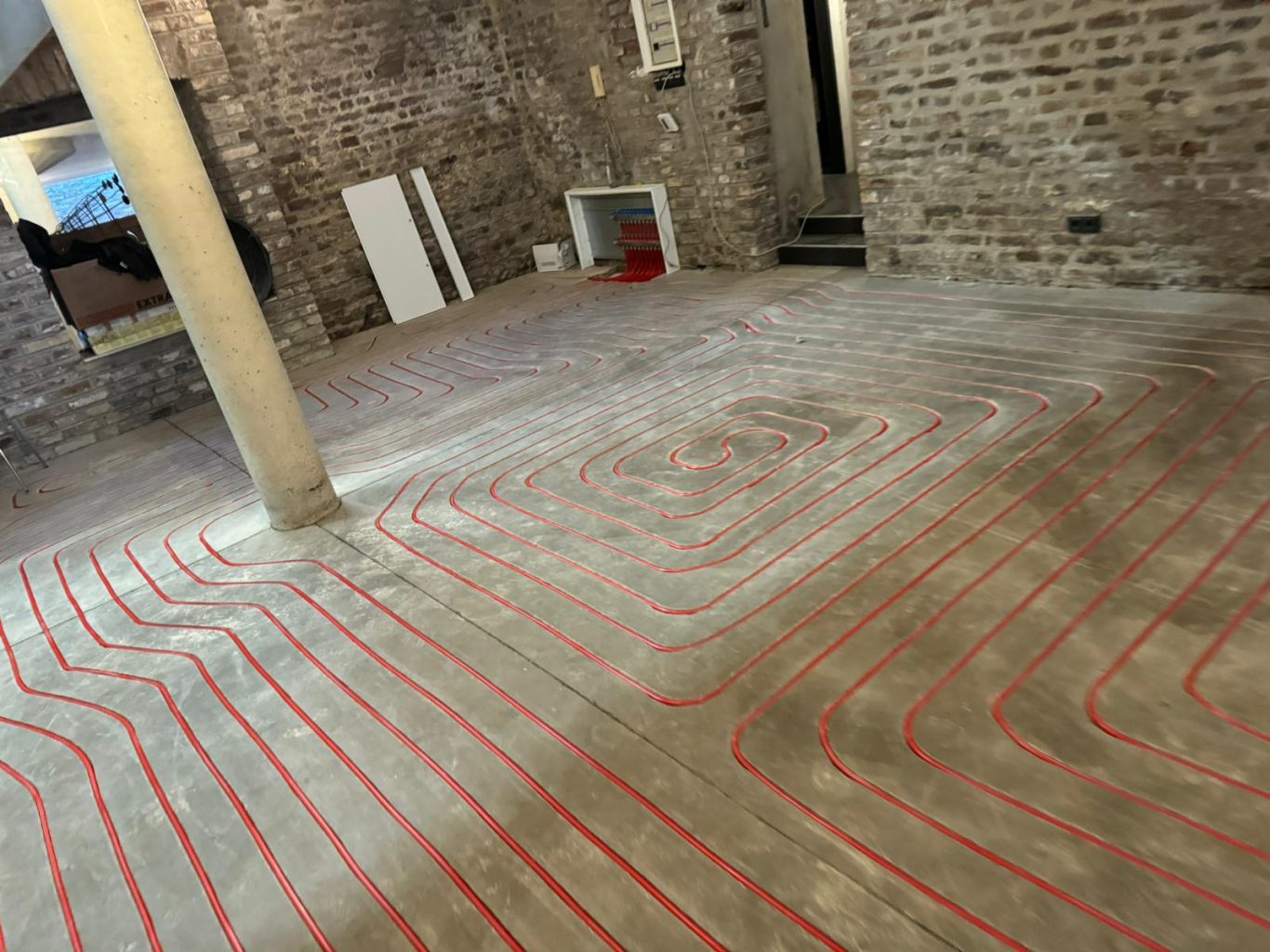 Zusätzlich wurde eine Fußbodenheizung nachträglich in den bestehenden Estrich eingefräst, um eine gleichmäßige Wärmeverteilung zu gewährleisten.
