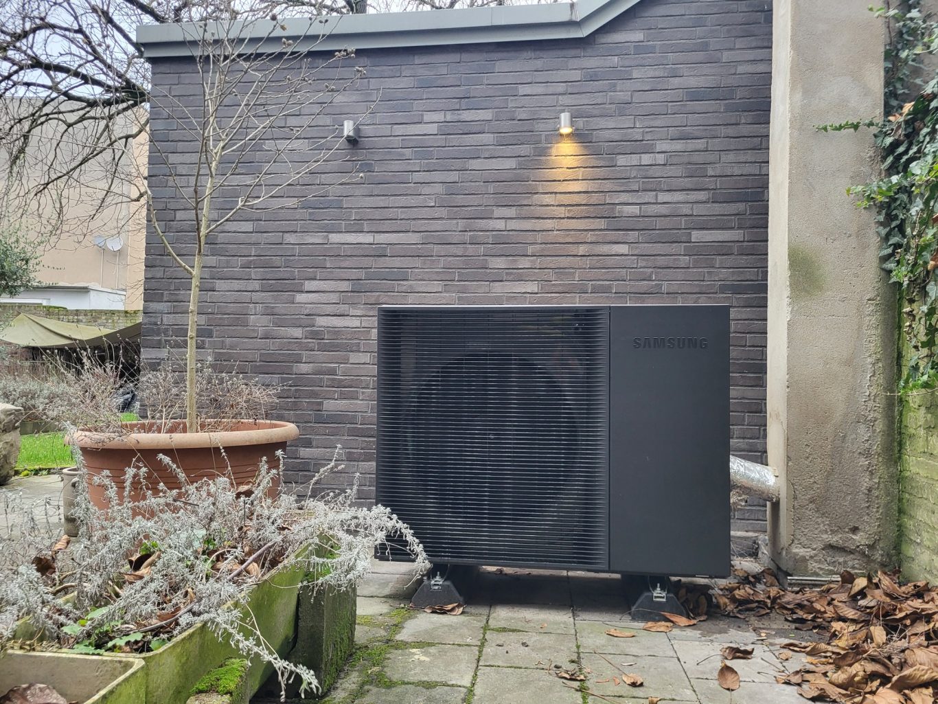 Die Heizungsanlage wurde durch eine Split-Wärmepumpe mit integriertem 500-Liter-Wärmespeicher ersetzt. Zusätzlich wurde eine Photovoltaikanlage mit einer Leistung von 9,8 kW sowie ein Batteriespeicher mit einer Kapazität von 13,8 kWh installiert, um den Eigenverbrauch zu optimieren.